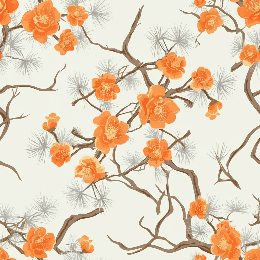Transform your sanctuary with this exquisite embroidered motif. Delicate, painterly branches and vibrant orange blooms bring timeless Asian artistry to your walls in seamless, organic harmony.
